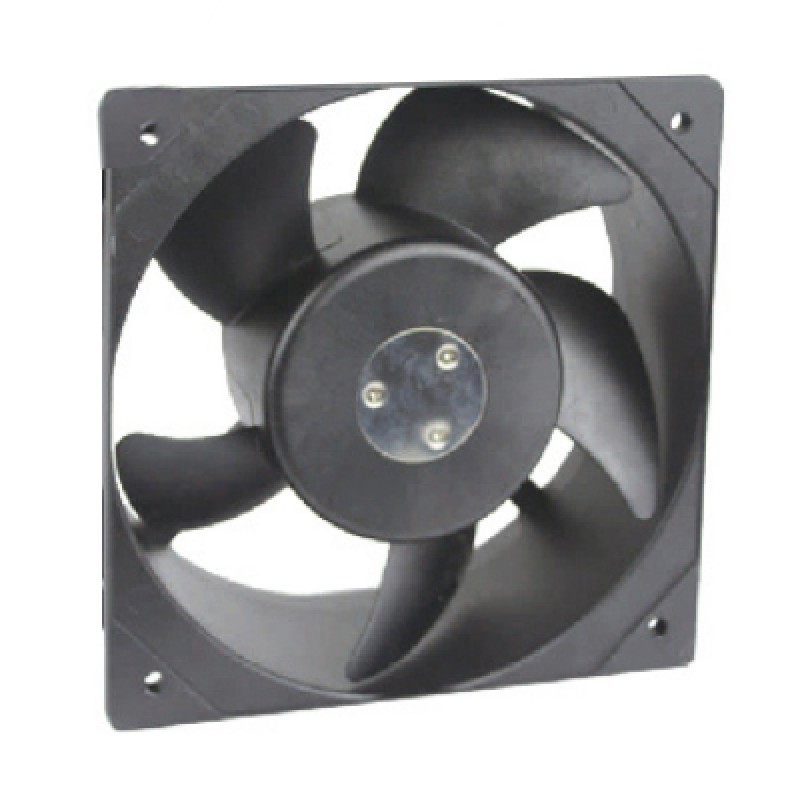 Крыльчатка изготовлена из негорючего термопластика, соответствующего стандартам горючести пластиковых материалов UL 94. Корпус выполнен из силумина (сплав алюминия с кремнием), покрытого антикоррозийным влагоотталкивающим покрытием черного цвета.Клеммные выводы обеспечивают удобство подключения вентилятора