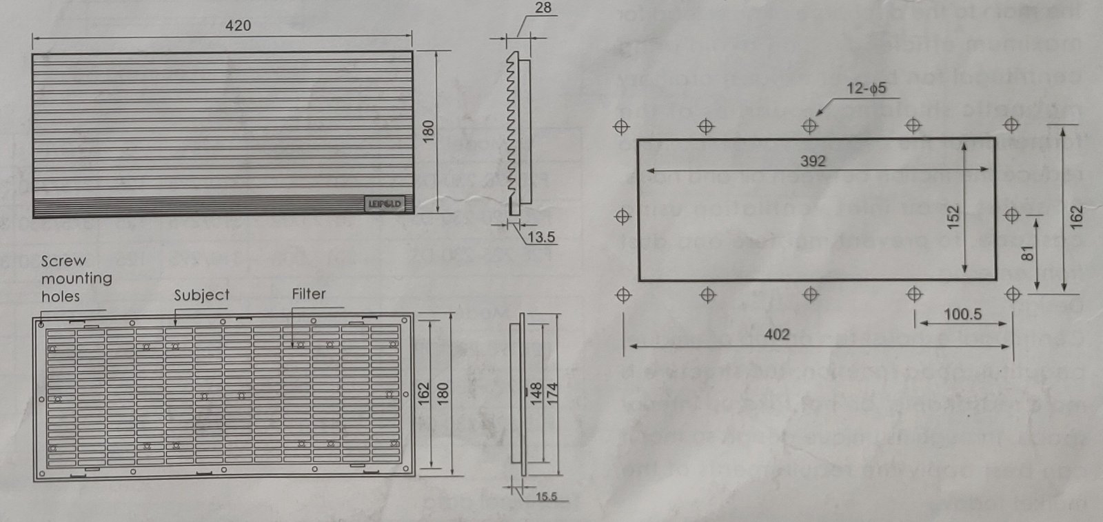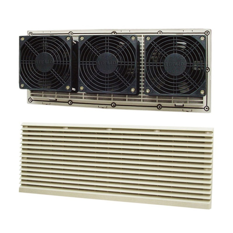 Допускает возможность установки одновременно до трех вентиляторов, каждый размером 120*120мм (осевой вентилятор F2E-120S-230), или до двух вентиляторов 171*150*52 (осевой вентилятор F2E-150S-230)